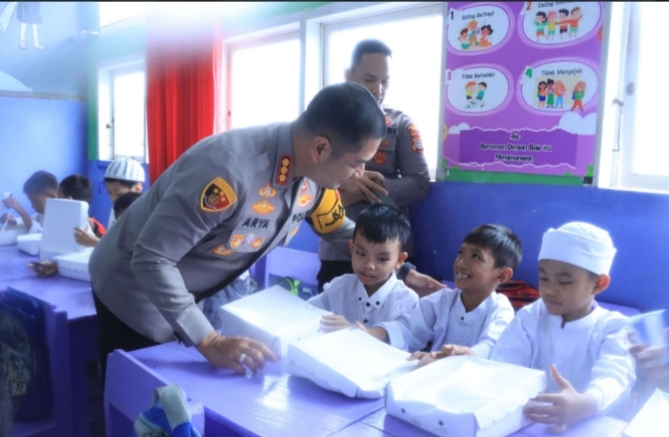 βKami dari kepolisian membagikan makanan bergizi gratis sebagai bentuk dukungan terhadap program β program Bapak Presiden dan Wakil Presiden dalam rangka kesejahteraan anak β anak sekolahβ Ujarnya