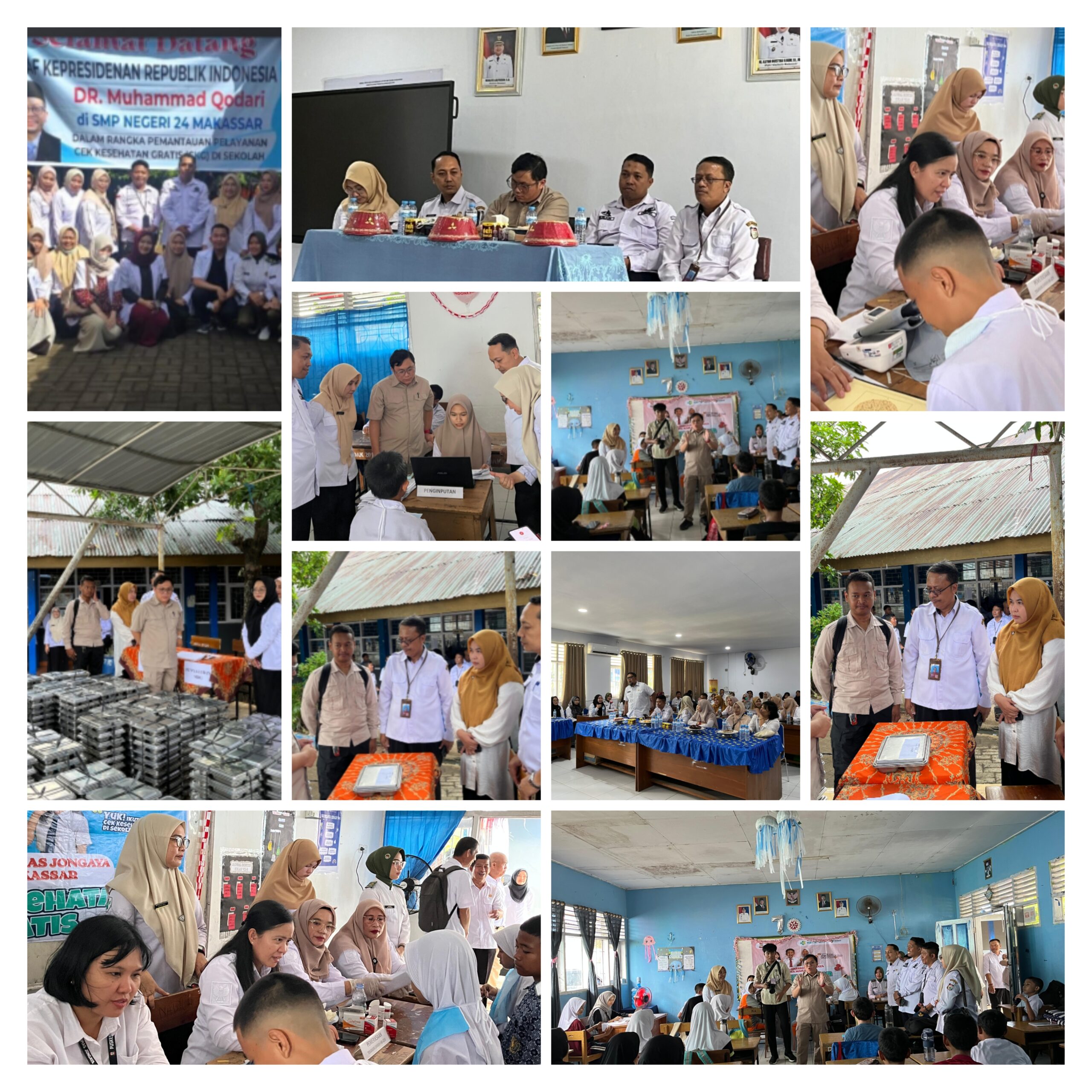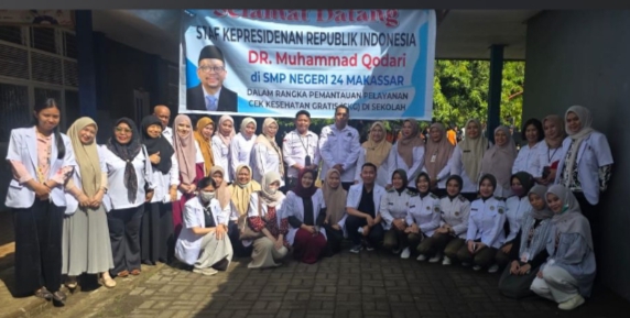 UPT SPF SMPN 24 Makassar Menerima Kunjungan Staf Kantor Kepresidenan Dalam Rangka Pemantauan Pelayanan Cek Kesehatan Gratis