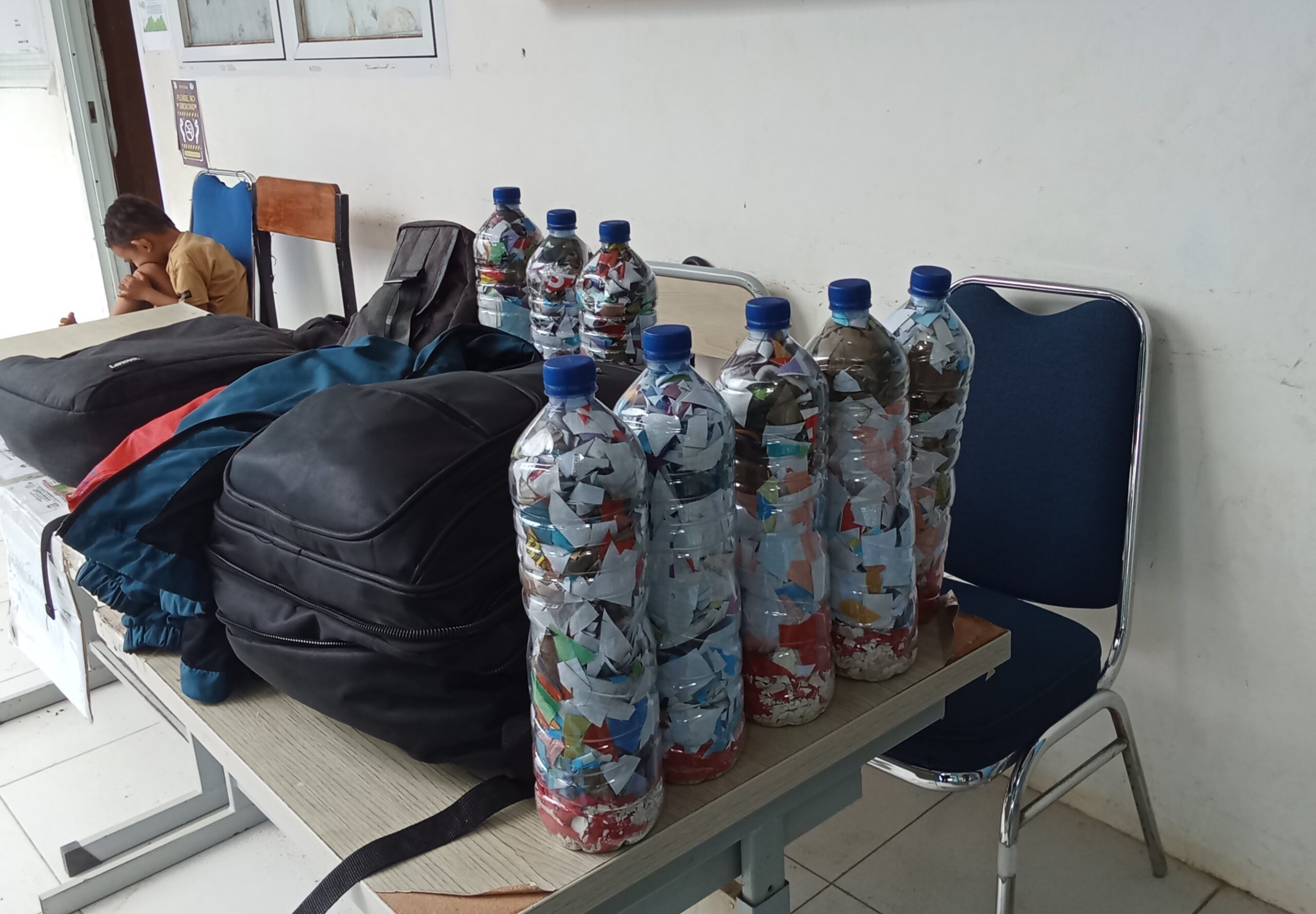 Misbahuddin, S.Pd.,MM., selaku kepala sekolah mengungkapkan, persiapan Adiwiyata Provinsi kami memanfaatkan limbah plastik dan kertas dijadikan sekat ruang.