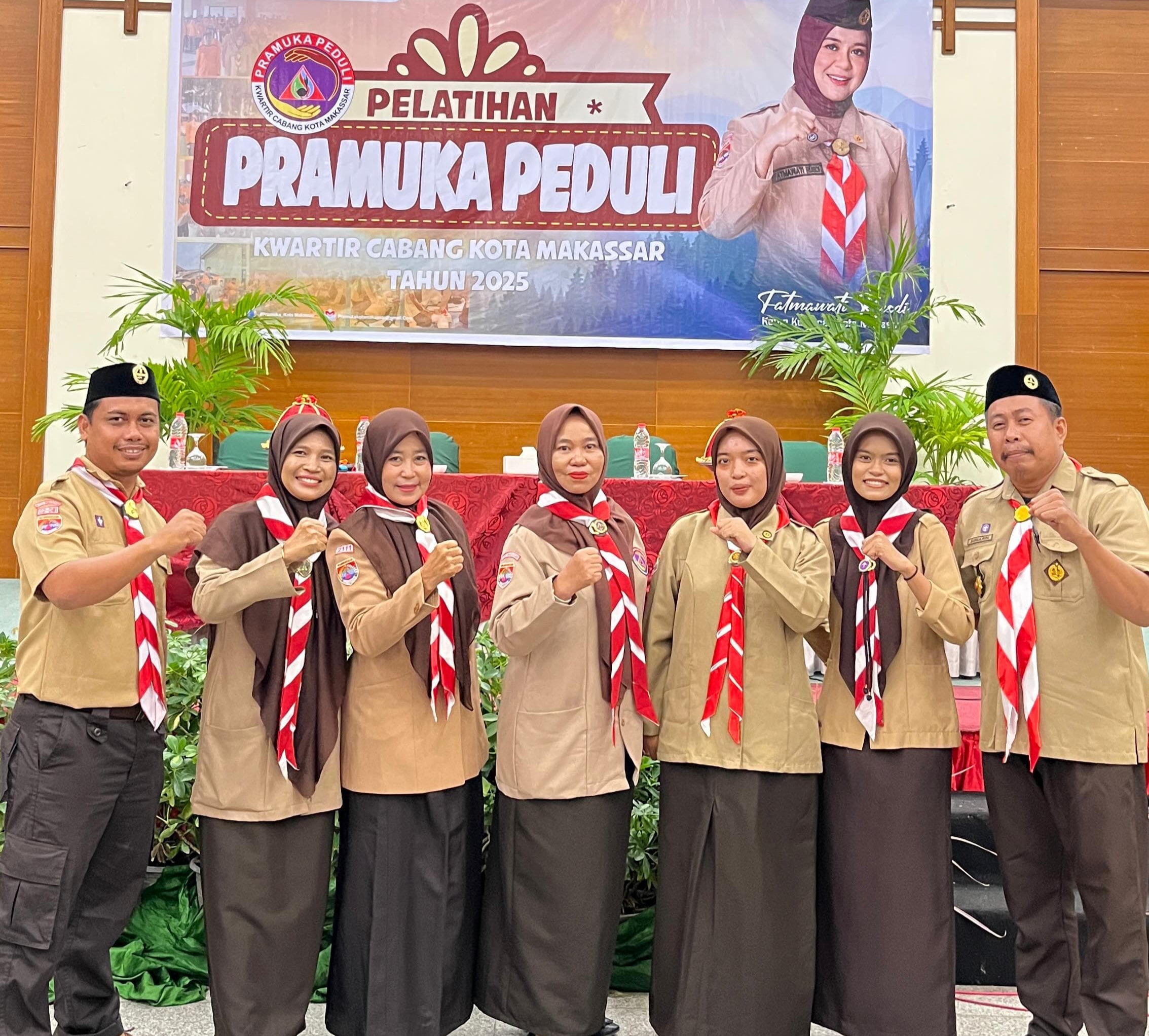 TargetNasional Online – Ketua Mabigus UPT SPF SDI. Bakung 2 Kec. Biringkanaya Kota Makassar, Nur’aedah, S, Pd.,M.M., beserta Armawati Futri Fajar, SE (Pembina). mengikuti kegiatan pelatihan Pramuka Peduli.
