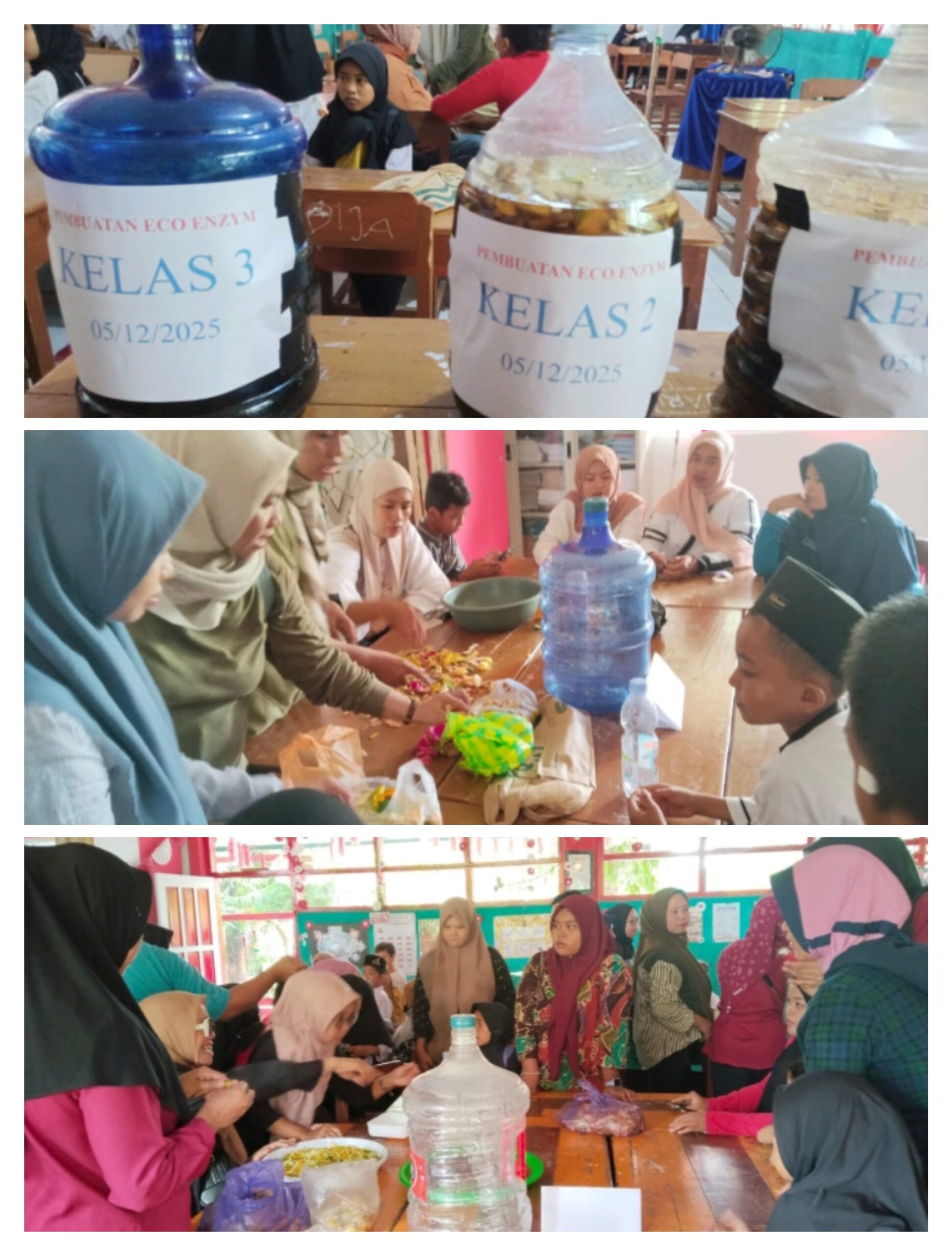 Semua peserta begitu antusias dan semangat sekali, ini di tunjukkan saat melakukan proses pembuatan Eco Enzym di sekolah yang diikuti siswa(i) dan didampingi oleh para guru sekolah.
