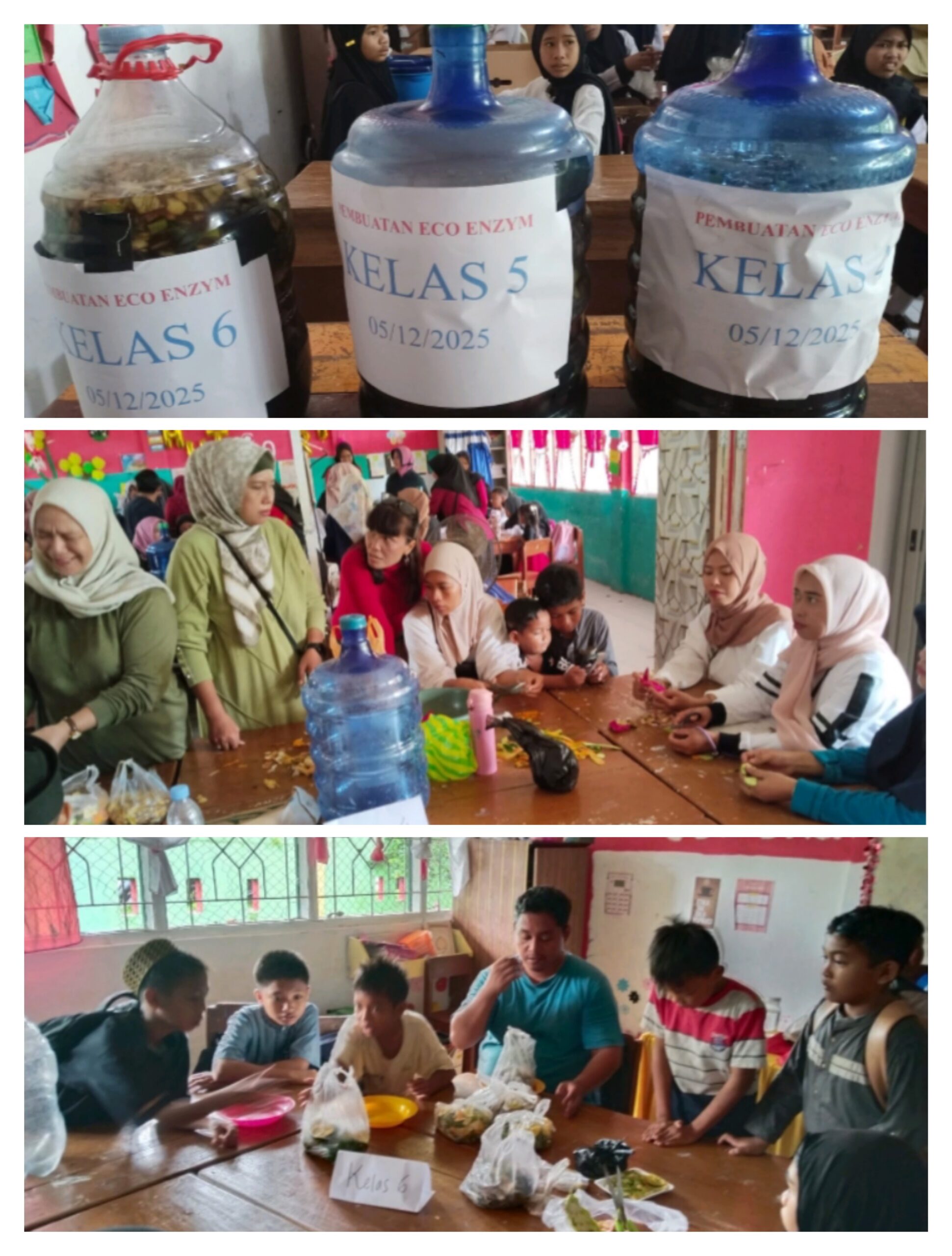 TargetNasional, Makassar — Pembuatan Eco Enzyim di UPT SPF SDN Kaccia saat ini digelar dengan berkolaborasi antara guru, orang tua siswa(i) dan siswa(i). Hal ini dikatakan Masita, S.Pd., kepada awak media, Sabtu (06/12/2025) sore.
