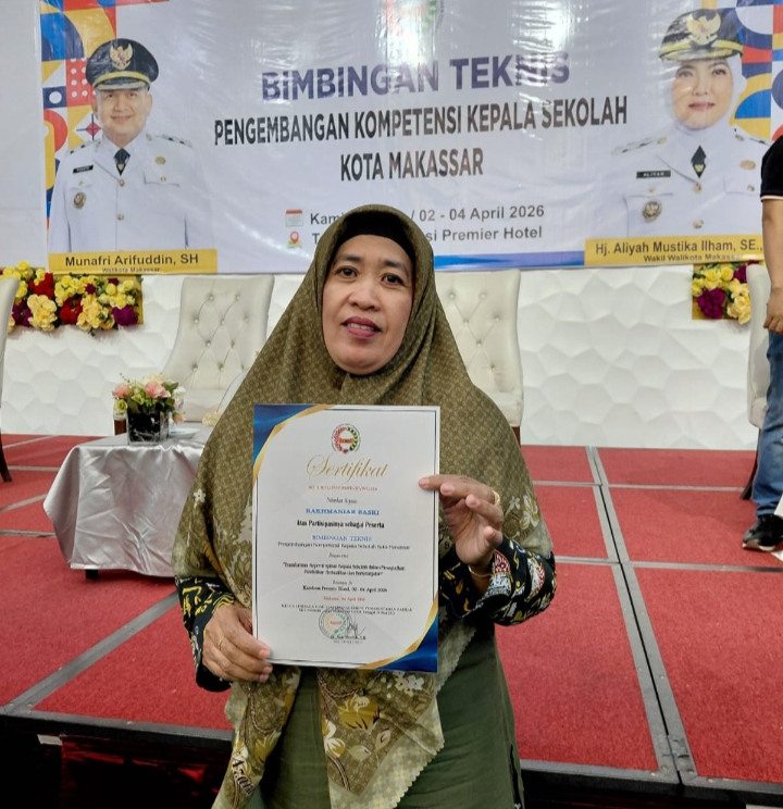 TargetNasional, Makassar — Hj. Rakhmaniar Basri, S.Pd., M.Si., turut menghadiri atau mengikuti Bimbingan Teknis (Bimtek) Pengembangan Kompetensi Kepala Sekolah Kota Makassar.