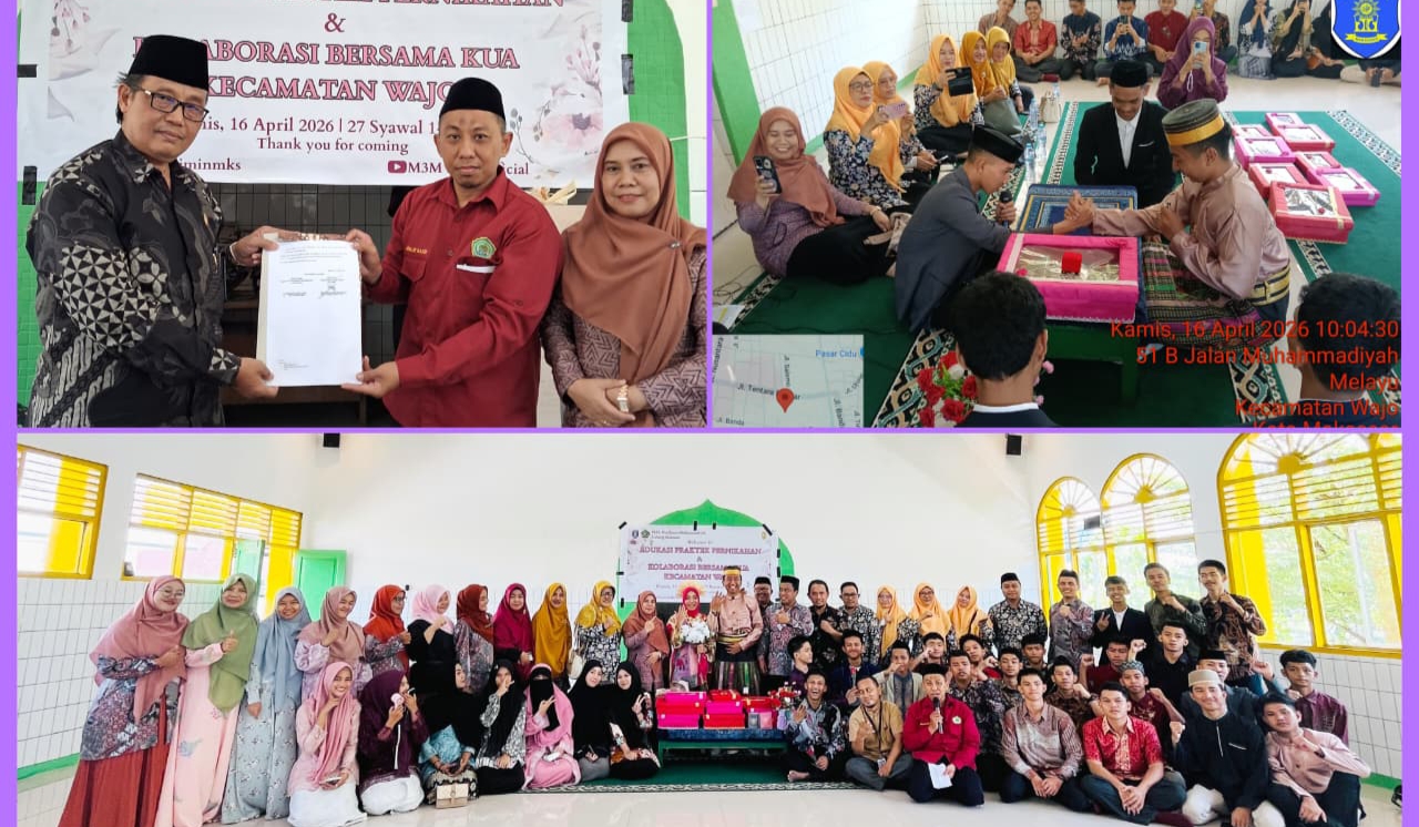TargetNasional Online – Dalam upaya menghadirkan pembelajaran kontekstual dan aplikatif, Madrasah Aliyah Swasta (MAS) Muallimin Muhammadiyah Cabang Makassar menggelar _Praktik Nikah Siswa_ yang dirangkaikan dengan penandatanganan _Memorandum of Understanding_ (MoU) bersama Kantor Urusan Agama (KUA) Kecamatan Wajo. Kegiatan berlangsung pada Rabu, 15 April 2026, di lingkungan MAS Muallimin Makassar dengan dihadiri kurang lebih 200 peserta.